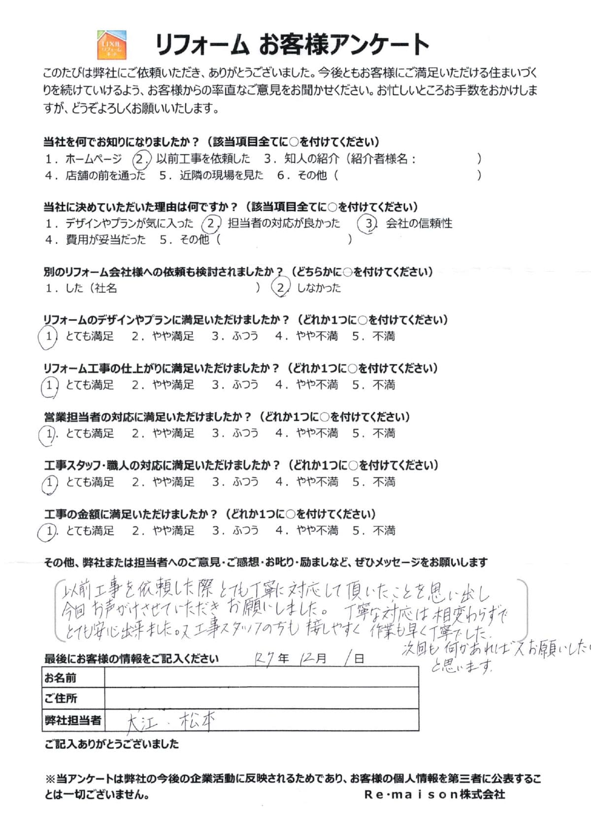 - リフォーム工事の仕上がりに満足いただけましたか?